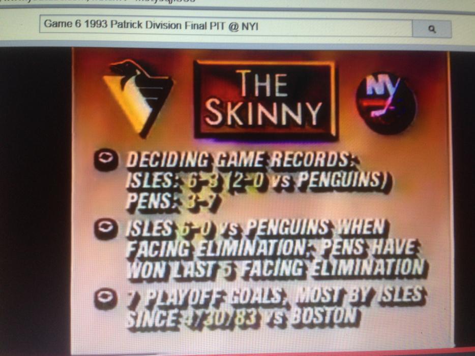 22 years ago tonight (1993) – Steve Thomas scored two goals, including the game-winner at 10:32 of the third period, as the Islanders evened their best-of-7 Patrick Division final with the Penguins at 3 games each, with a 7-5 victory.